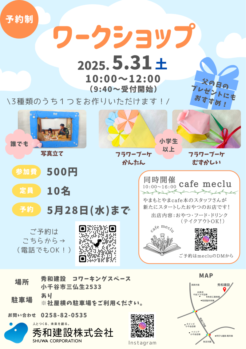 時間 ワークショップ      10:00~12:00(9:40~受付開始)