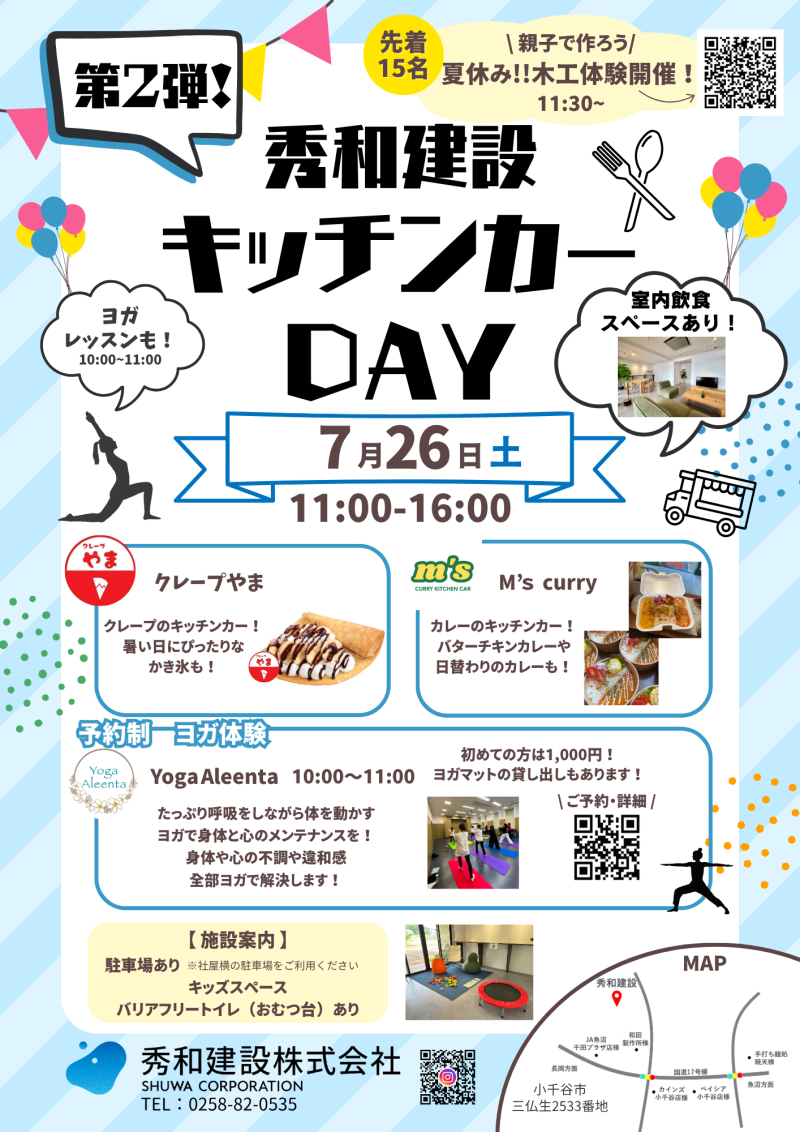 7/26(土)開催 第2弾!秀和建設キッチンカーDAY!ヨガレッスンも!