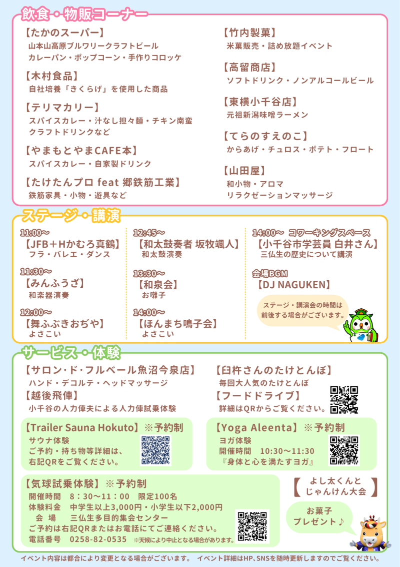 内容:飲食物販やステージ、体験ブースなど盛りだくさん☺