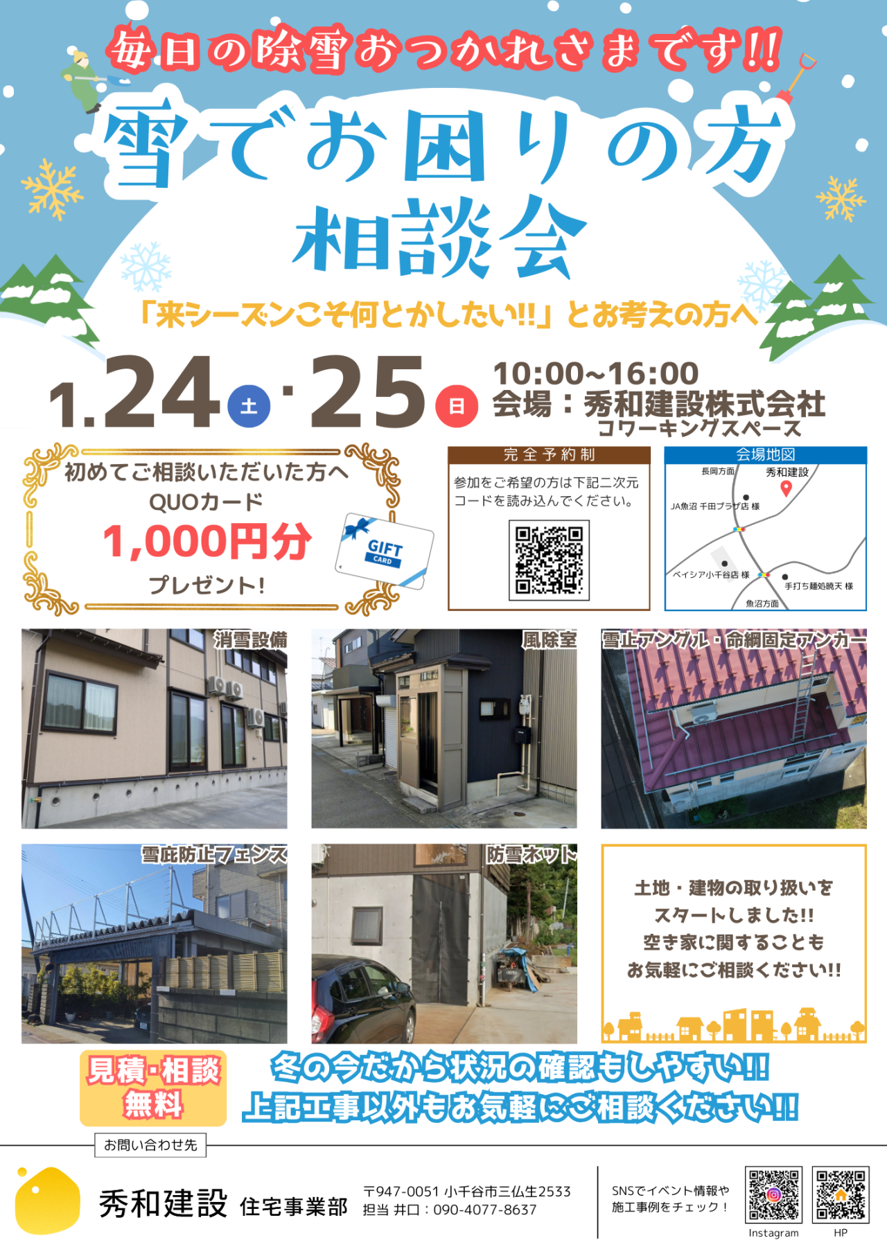 1月24日・25日に雪でお困りの方相談会を開催します!